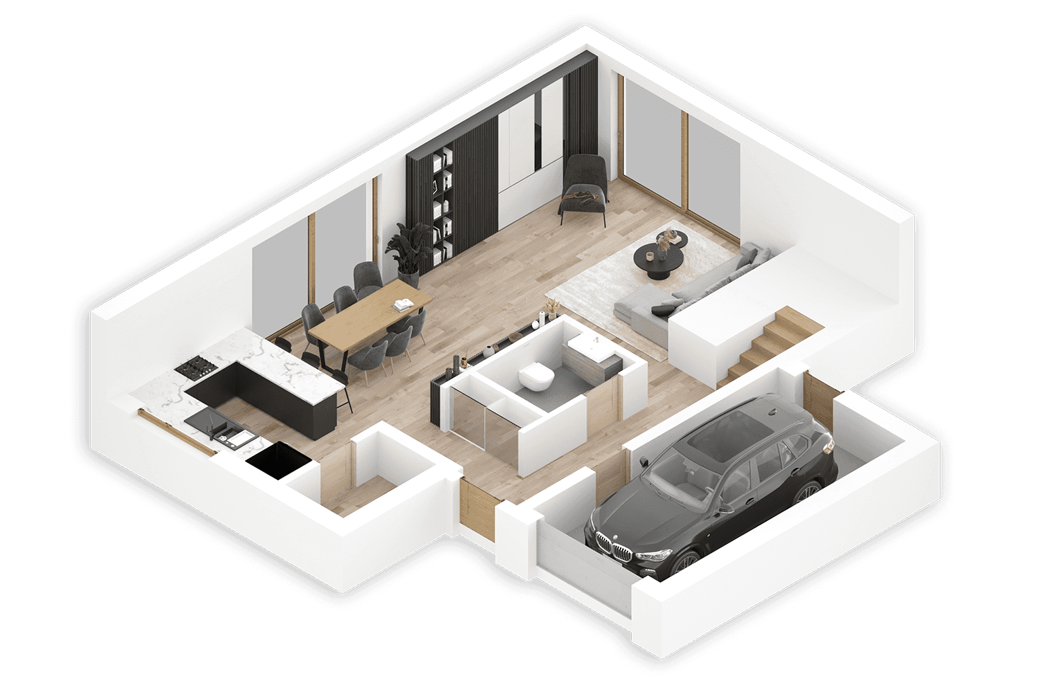 Dom przy ul. Promienistej 51a w Suchym Lesie to budynek o powierzchni 183 m2. Mieszkańcy domu cieszyć się będą nie tylko jego ciekawą architekturą, funkcjonalnymi pomieszczeniami, wysokim standardem wykończenia, ale również niepowtarzalnym ogrodem.
